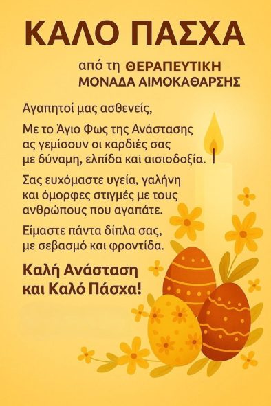 Η Διοίκηση και το προσωπικό της μονάδας μας σας εύχεται Καλό Πάσχα και Καλή Ανάσταση